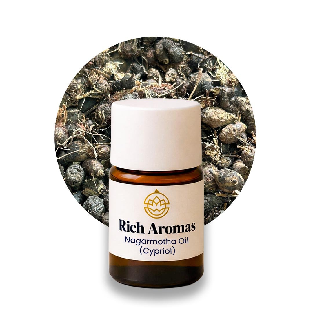 Nagarmotha Oil is obtained through steam distillation of the roots of Cyperus scariosus. Known for its earthy, woody, and slightly spicy aroma, it is widely used as a raw material in perfumery and fragrance manufacturing.